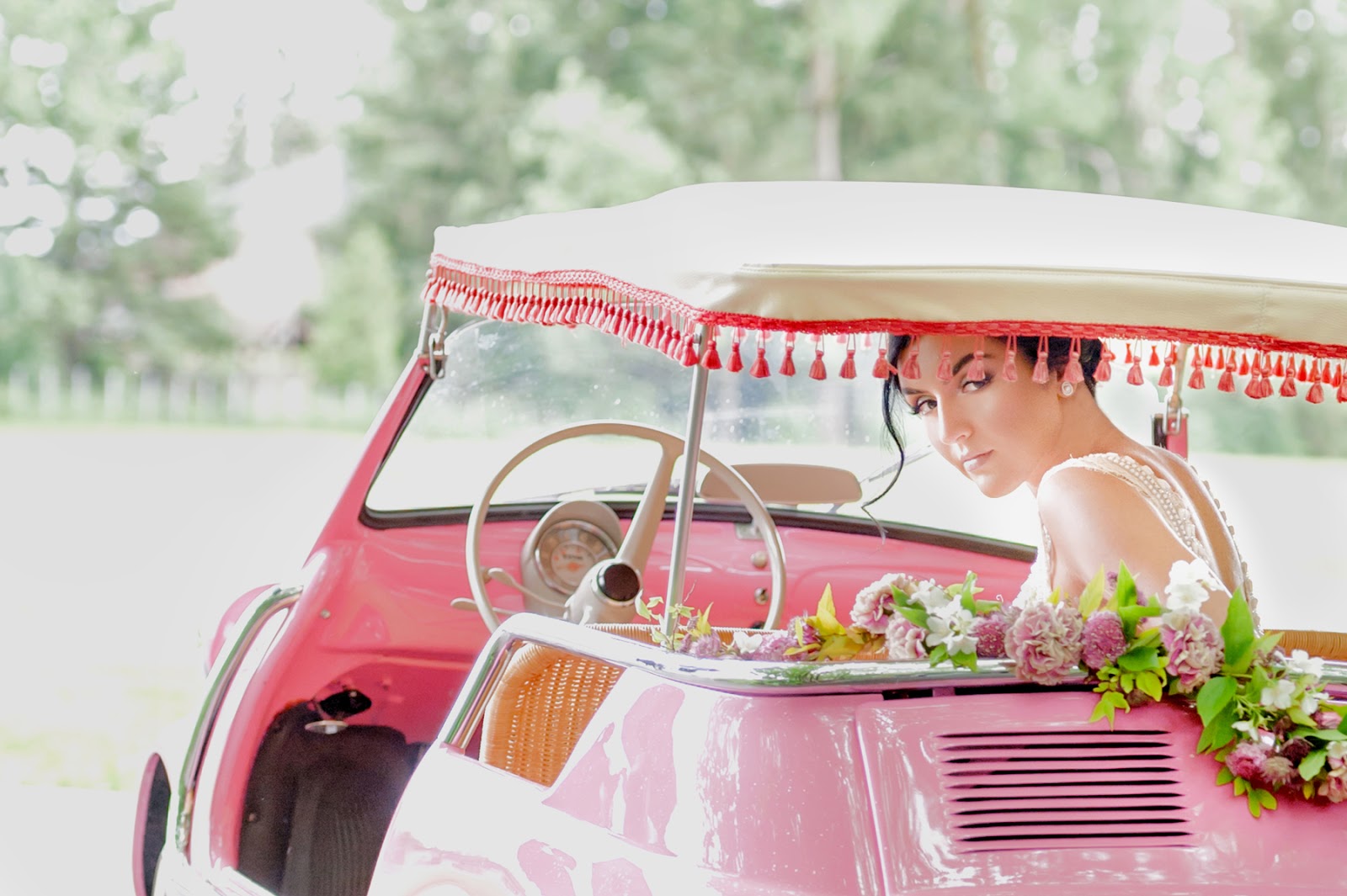 A big part of being in the wedding industry is taking part in creative photo shoots. I've been so lucky to have been part of some really awesome shoots over the last year. This one was proposed to me by the talented photographer Rebecca of Pepper and Light Photography. It didn't take long for me to answer with a resounding "YES!" because Rebecca and her co-planner Olivia of Cerise Events explained they were planning something really, really special. I'm a sucker for vintage cars and flowers on bikes, and this shoot included all that and more.
